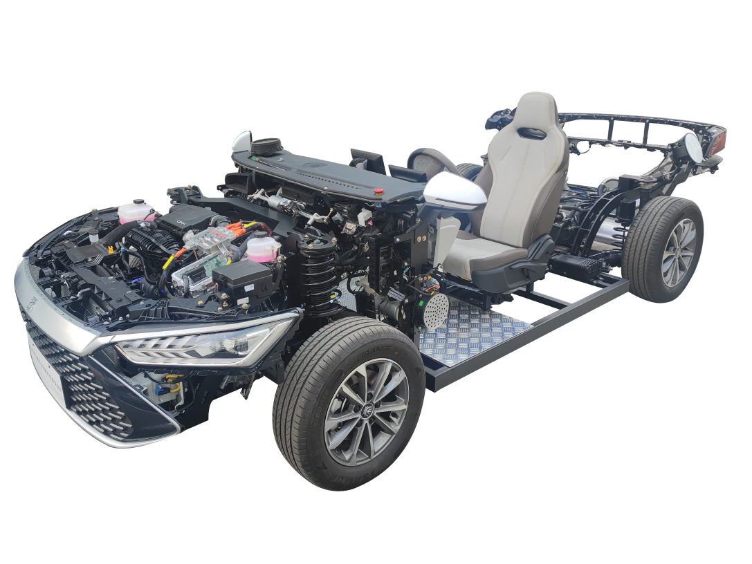 選用比亞迪秦原車(chē)部件制做;在不改變?cè)计?chē)主體布局的情況下對(duì)其進(jìn)行深度改裝,并且所有車(chē)身外罩均被拆除;